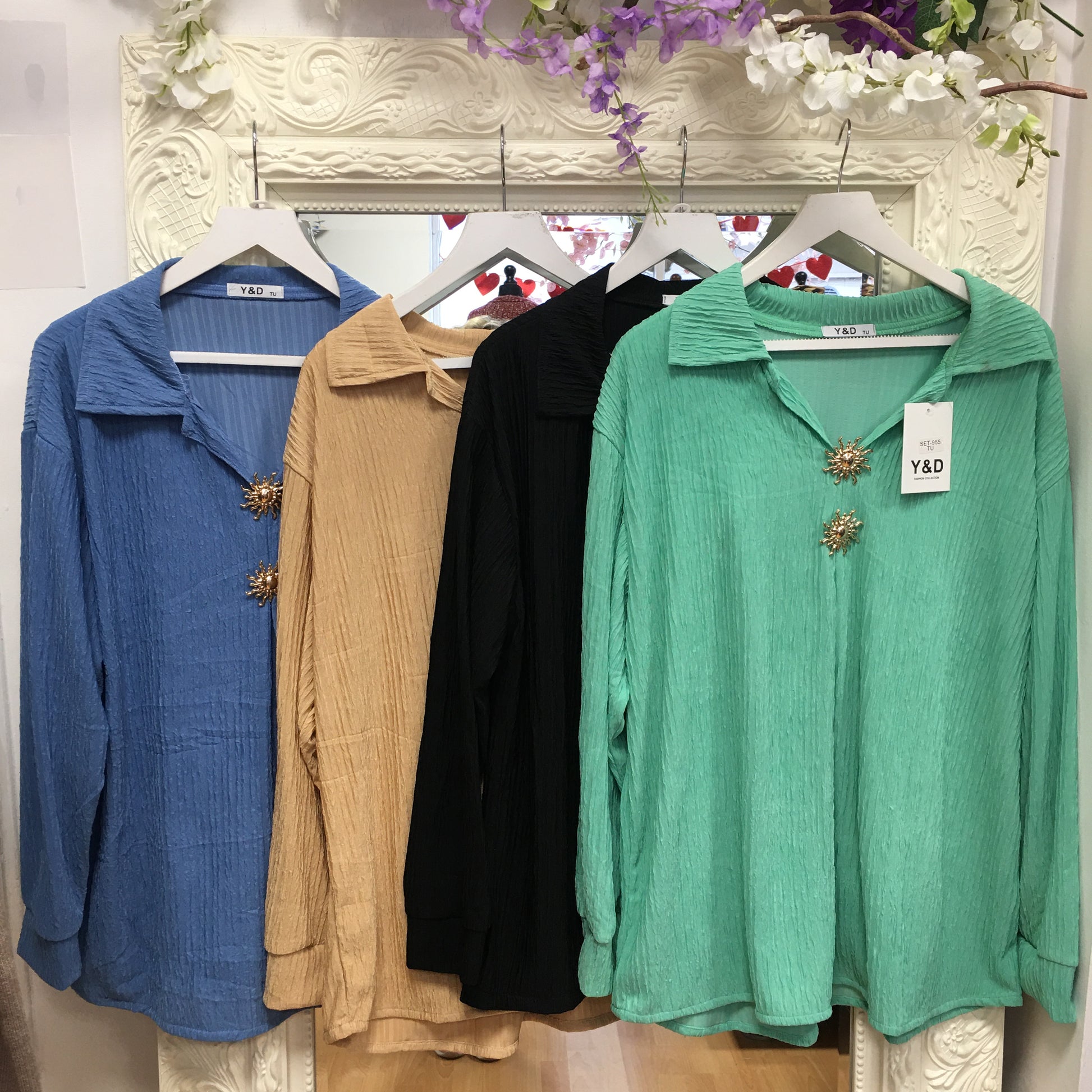 Lightweight Co ord with cute gold sun button detail & elasticated waistband. Free size fit up to a 16-18.