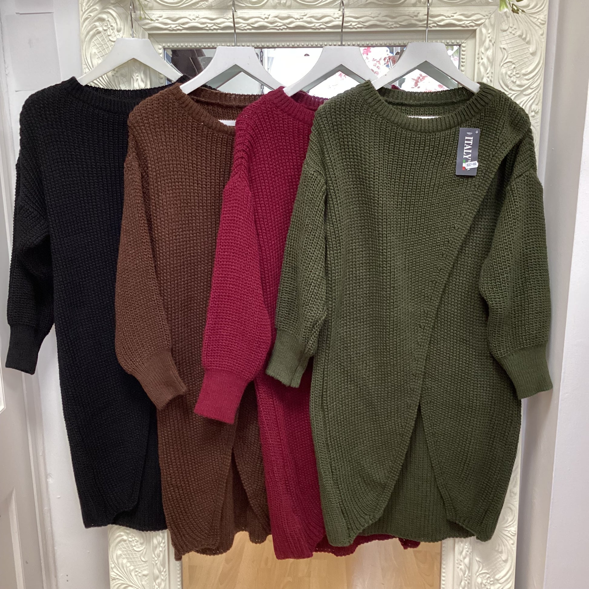 Long jumper with quirky crossover front detail. Free size fit up to 14-16.