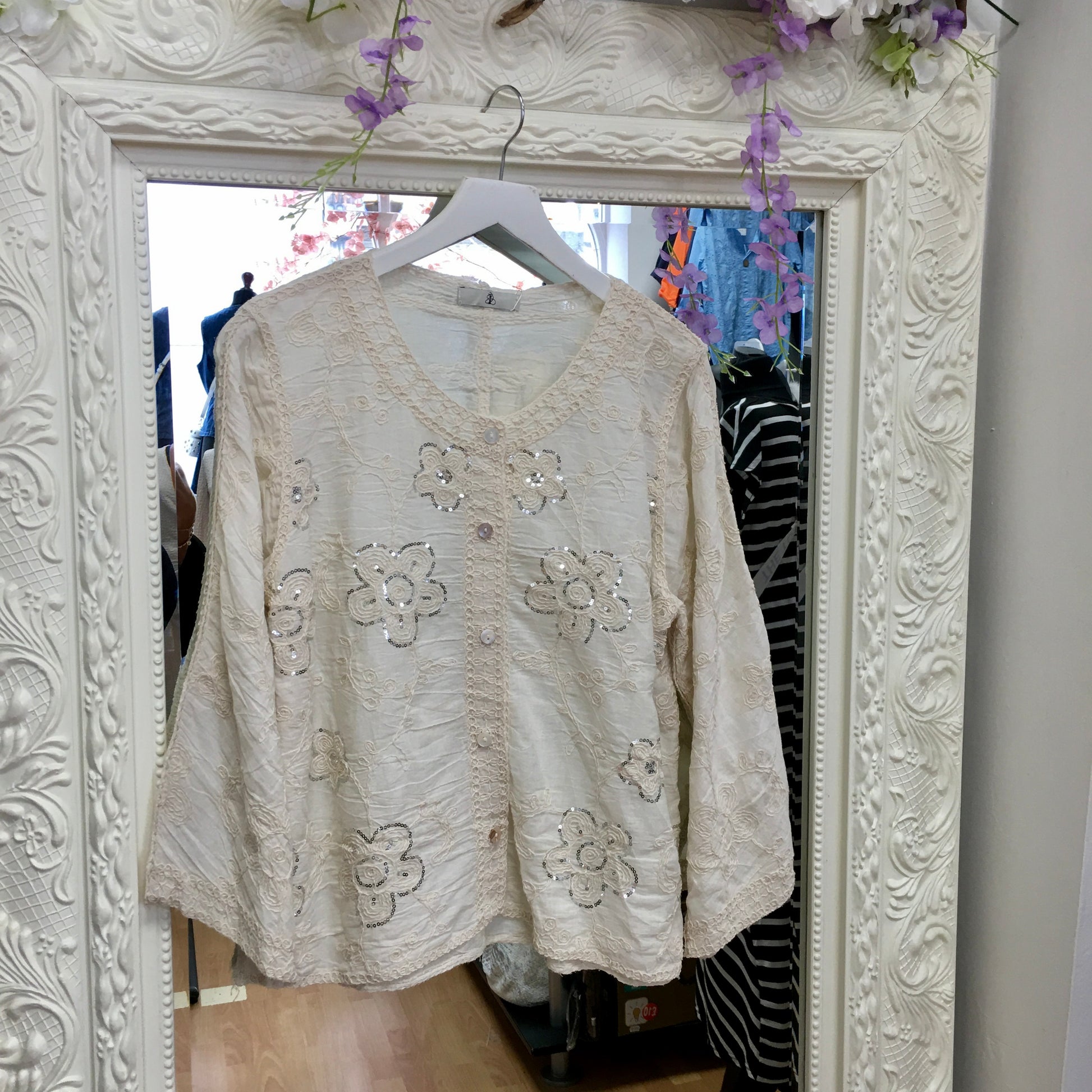 Embroidery tops - one with silver and one with gold sequins