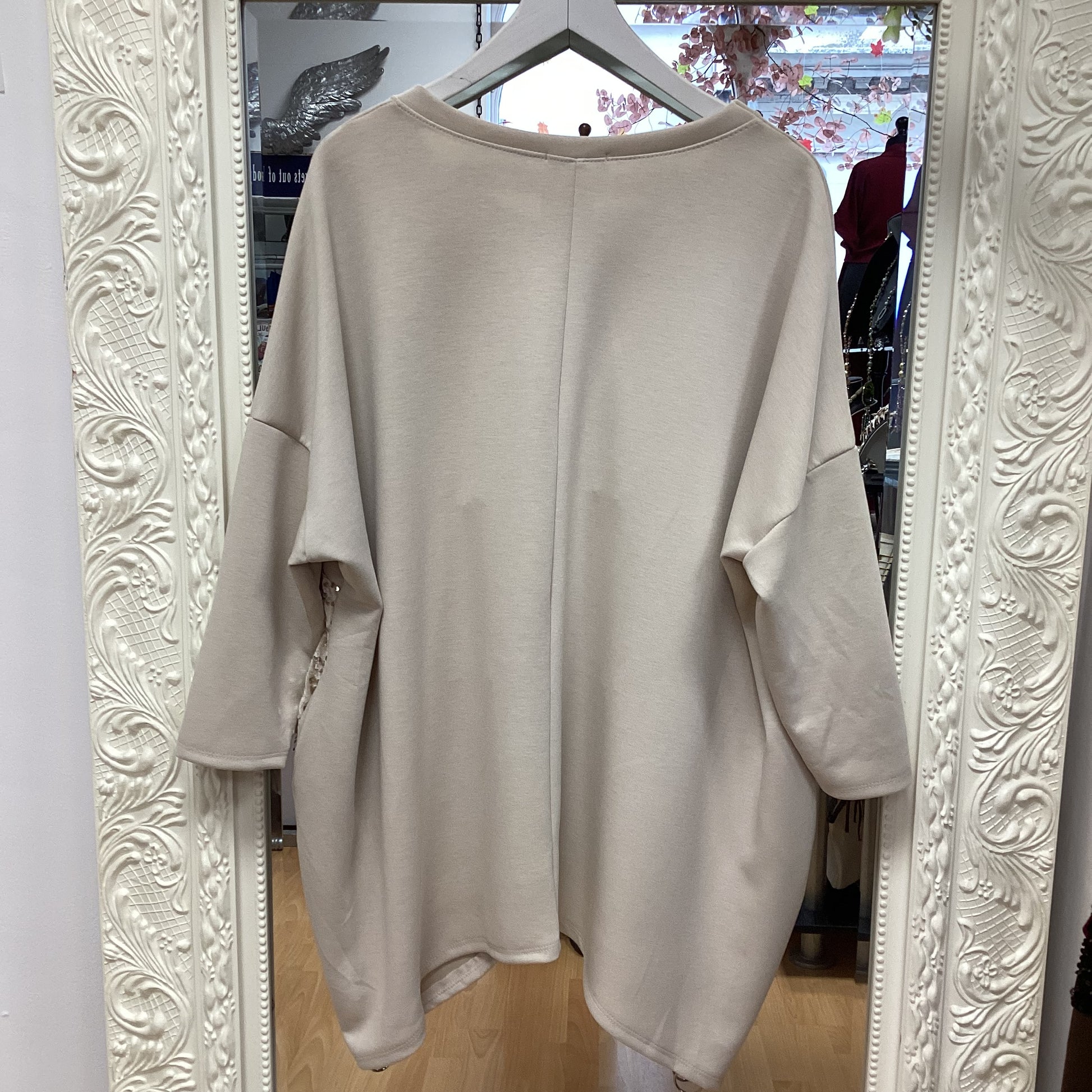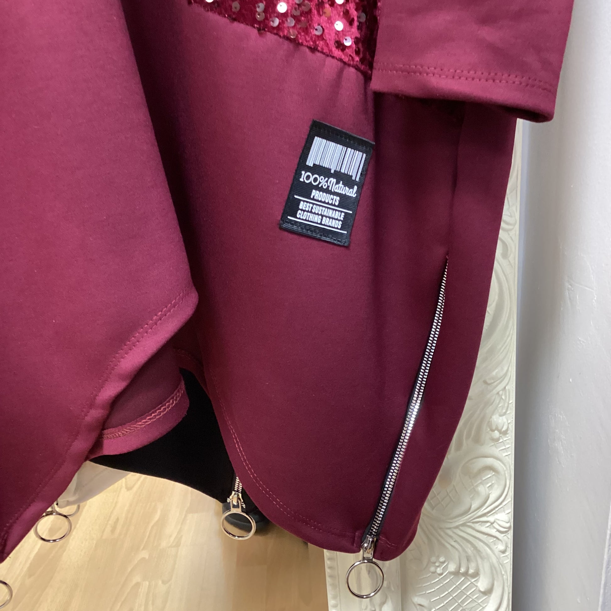 Oversized top/dress with sequins & zip detail. Soft scuba material. Free size fit up to an 18.
