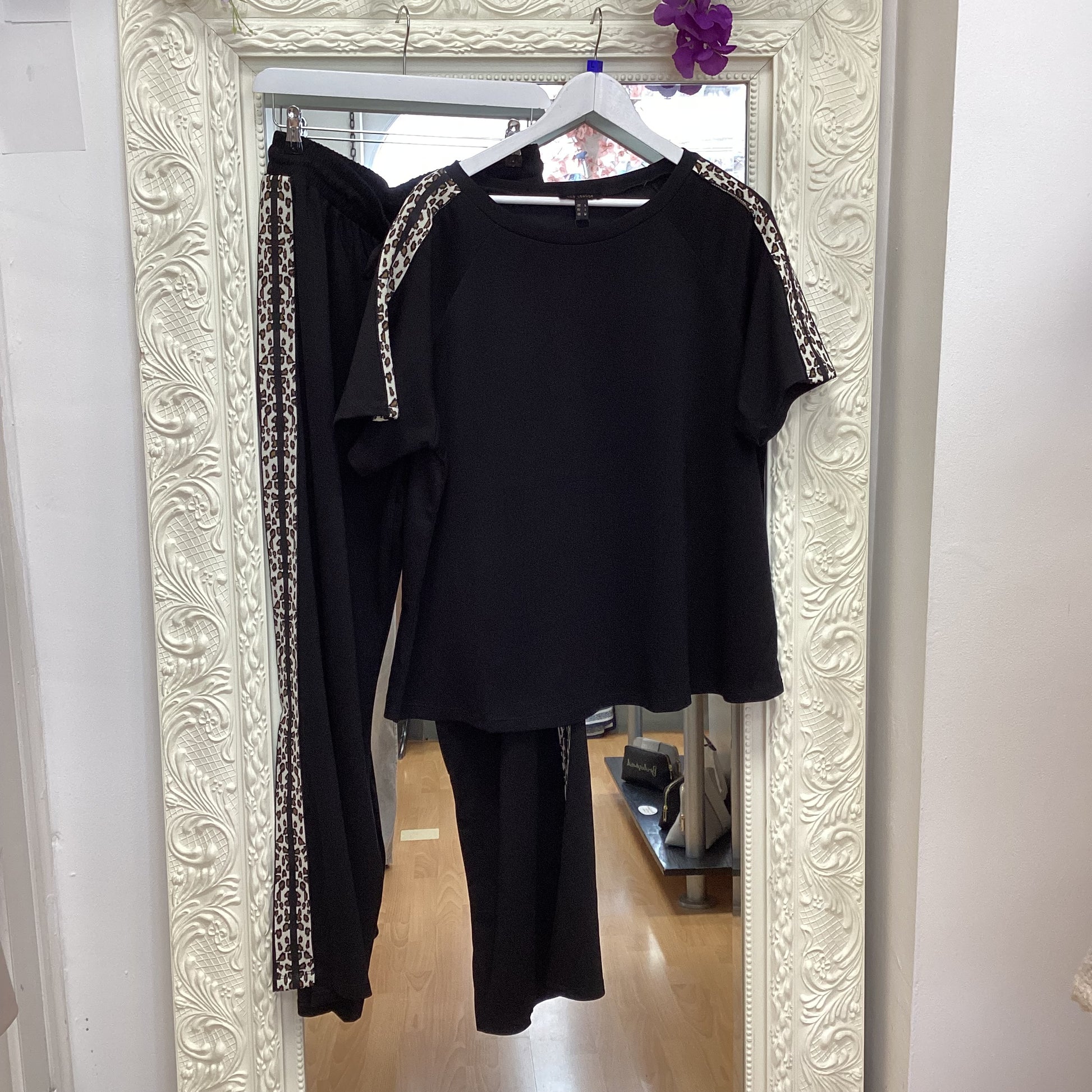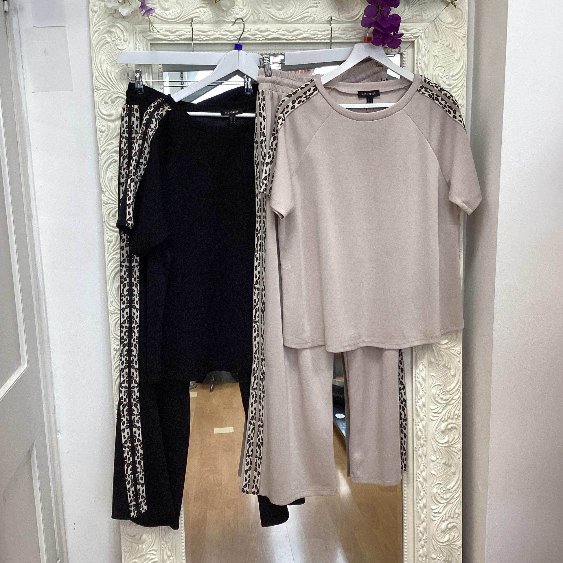 Super soft trouser sets elastic tie waistband. Leopard print details comes in S M L