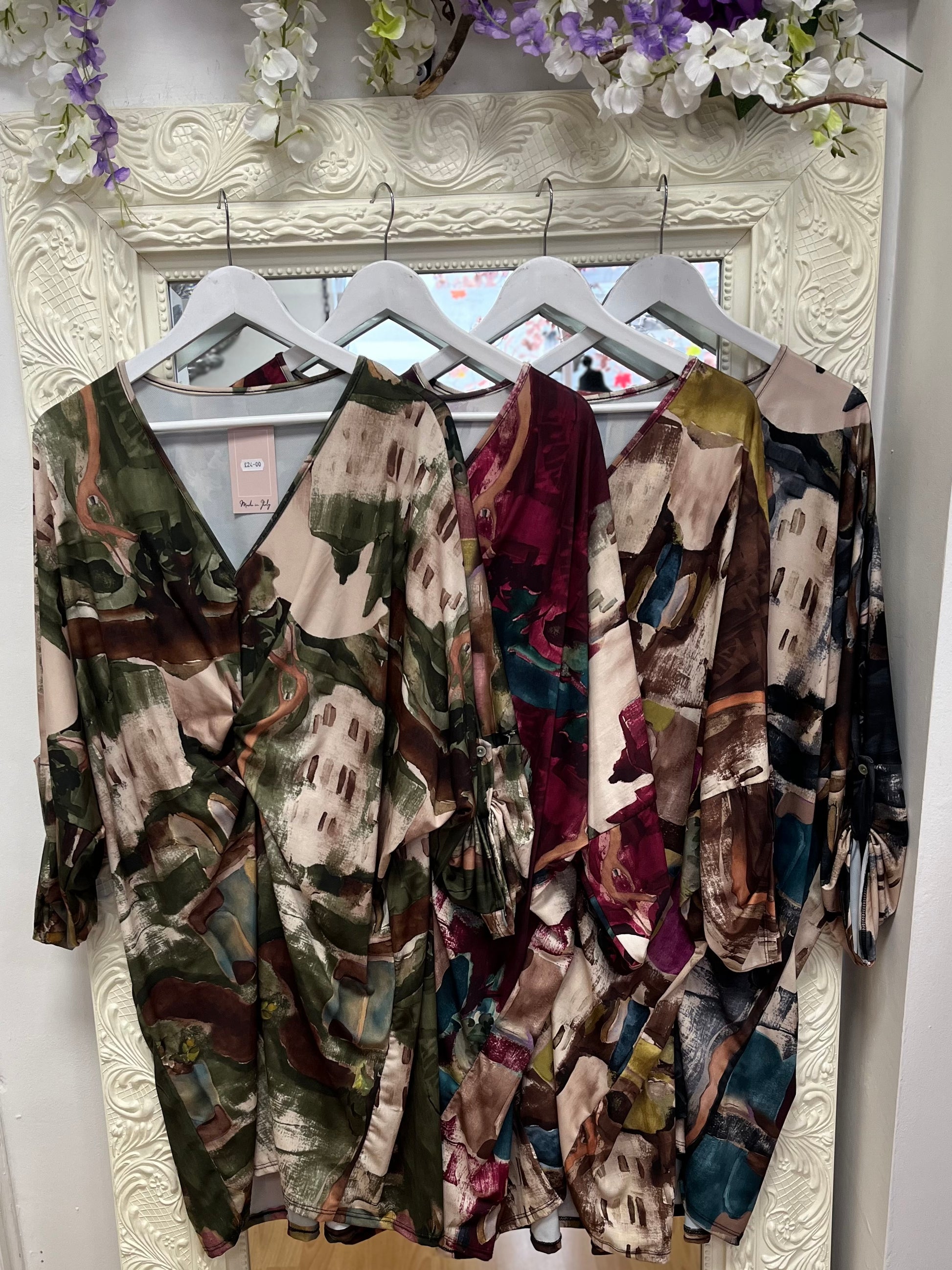Oversized dresses with flattering front knot & popular Italian landscape print. Free size fit up to a 18-20.