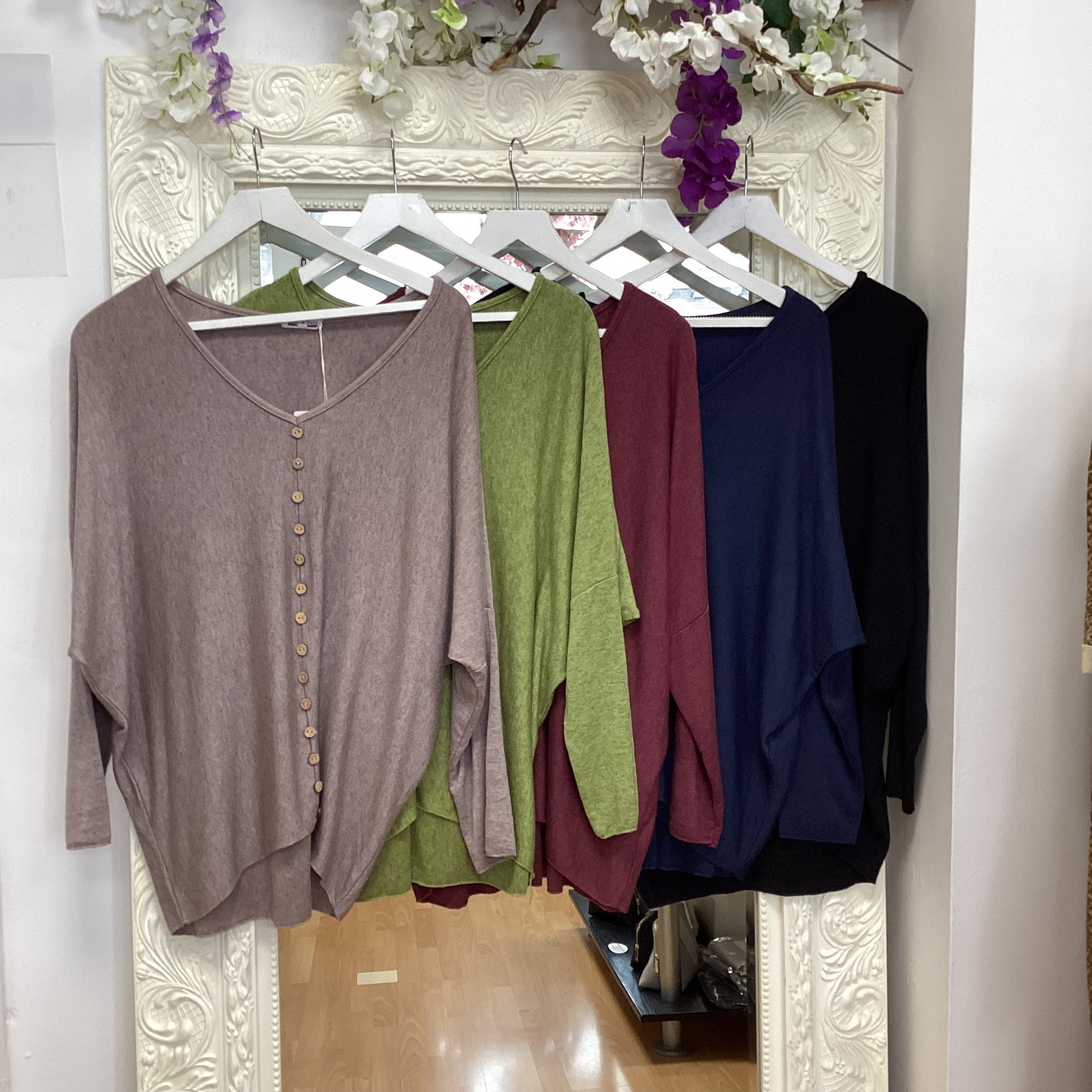 Fine knit long jumper with v neck & button detail. Free size fit up to a 16.
